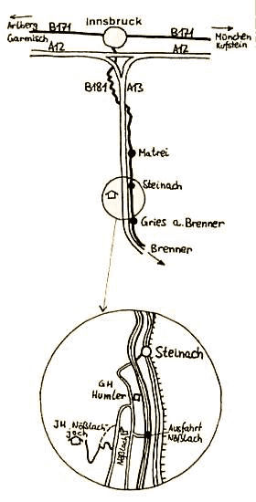 Anreise: Fährt man bei der Ausfahrt Nösslach von der Wipptal Autobahn A13 ab, gelangt man in kleinen Weiler namens „Nösslach/Nößlach“, der zur Gemeinde Gries am Brenner gehört. Dort findet man am Fuße der Forststraße bzw. Rodelbahn des Gasthauses Nösslachhütte ausreichend Parkplätze. (kostenpflichtig)